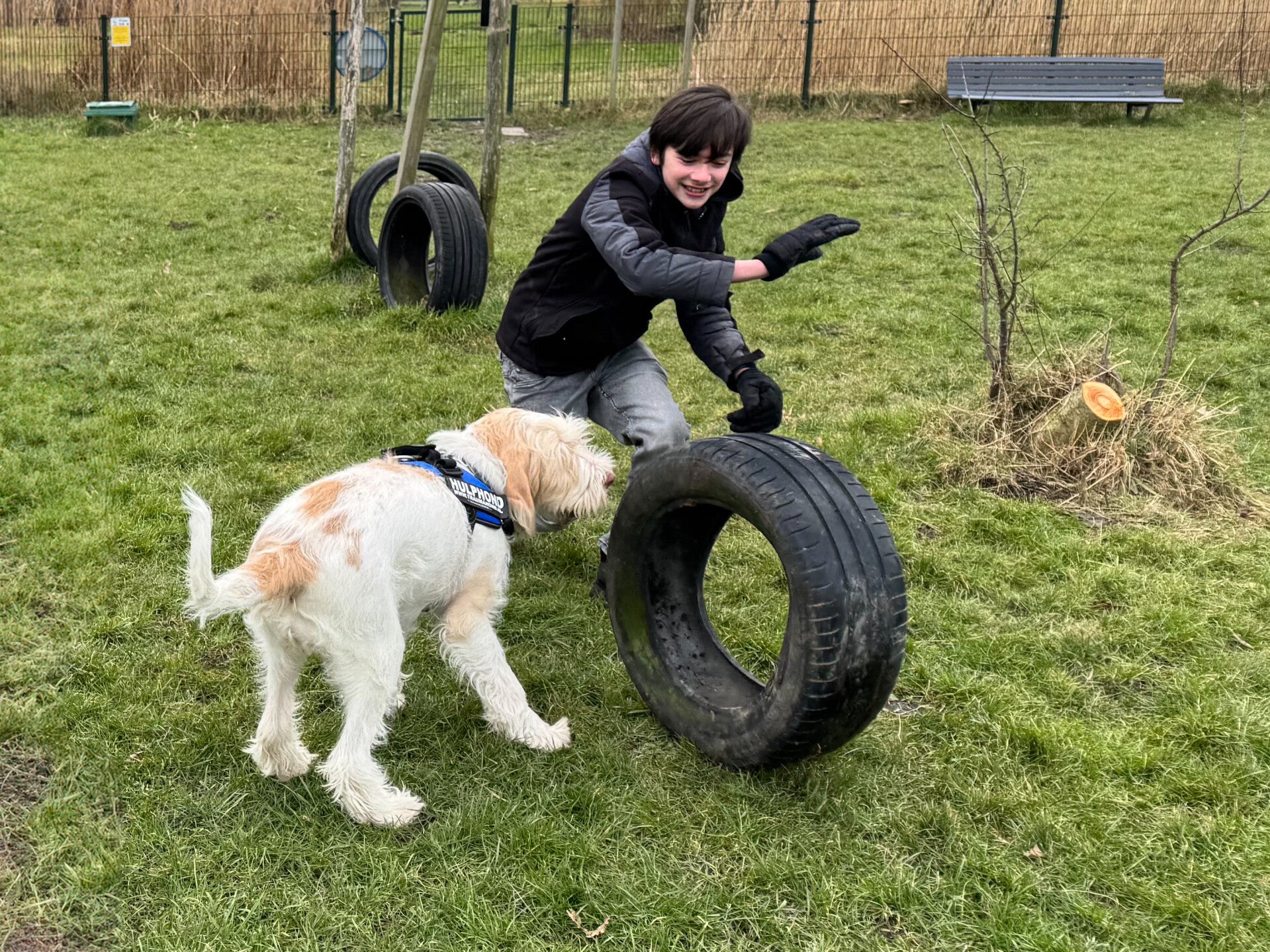 En natuurlijk ook met lekker gewoon hond zijn, spelen en ontdekken. Juist dat evenwicht maakt haar stabiel.