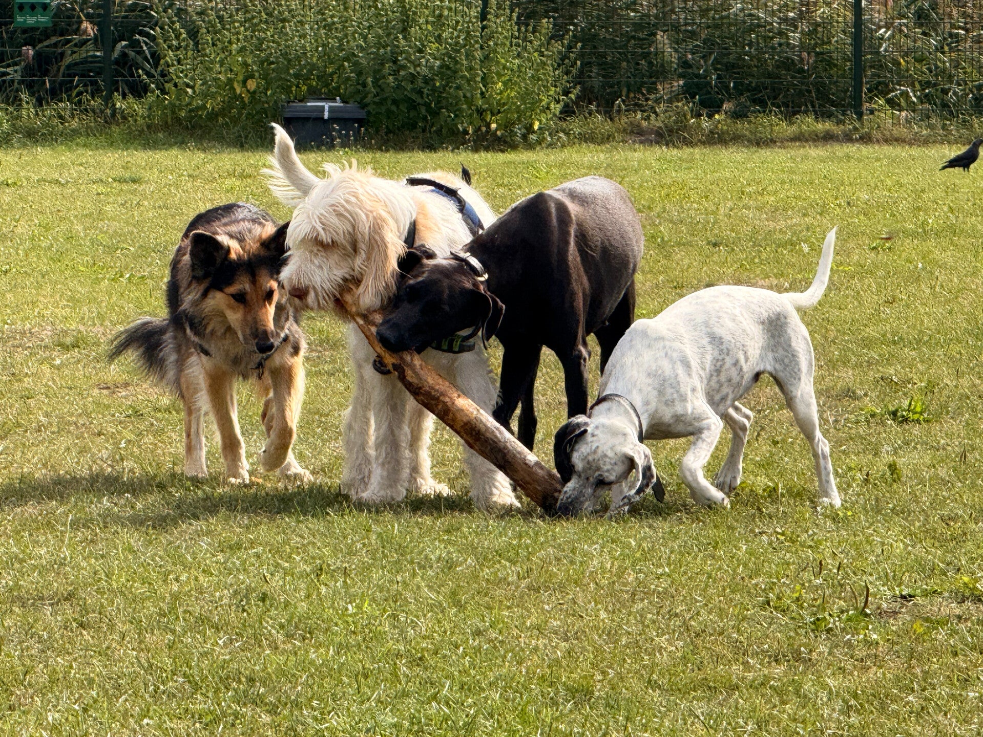 Tegelijk is Bella ook gewoon een hond. Ze heeft beweging nodig, ontspanning en contact met andere honden.